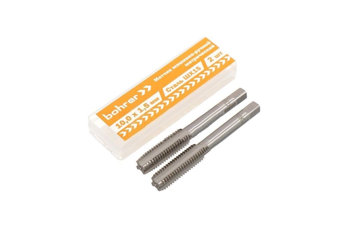 Метчик Bohrer машинно-ручной 10,0 х 1,5 мм метрический (сталь ШХ15 подшипниковая) (2 шт в уп)